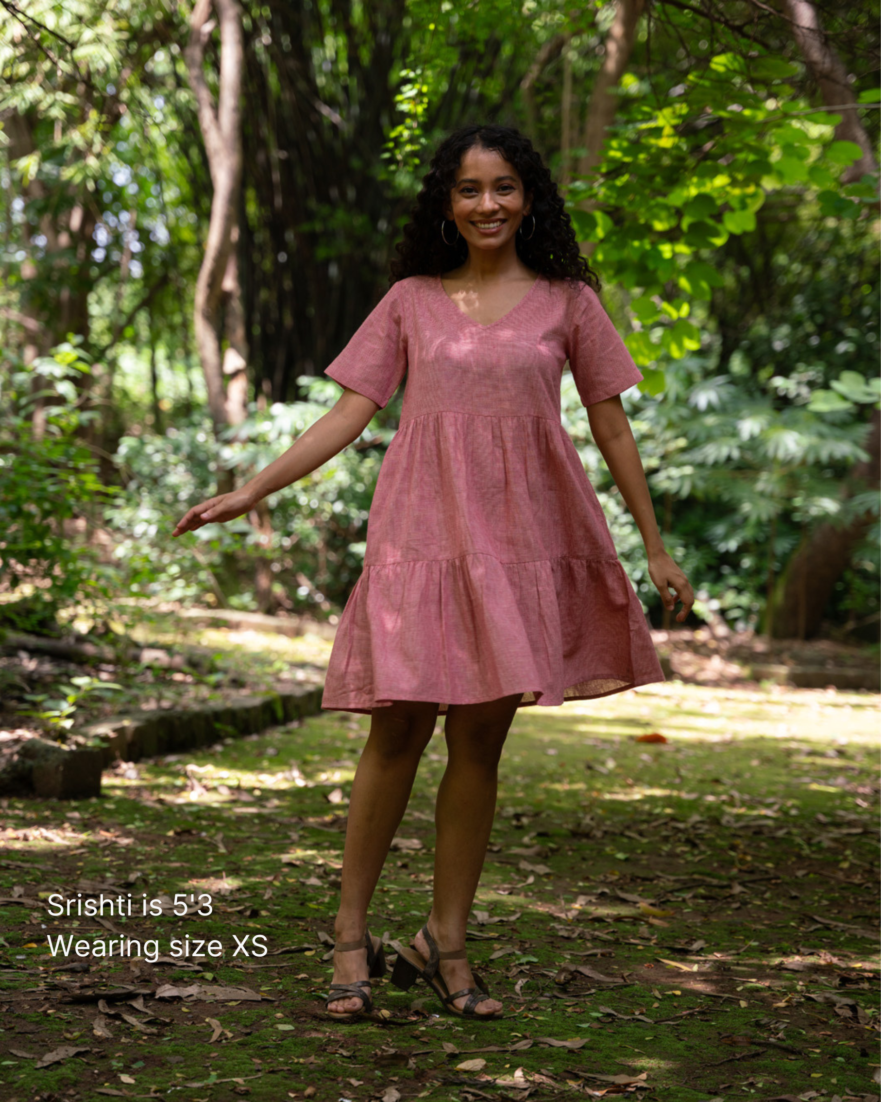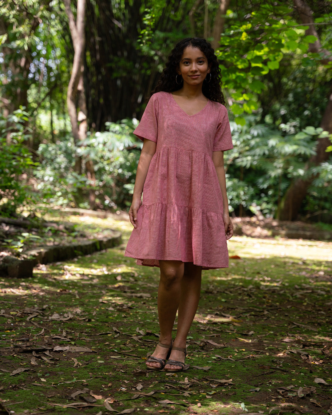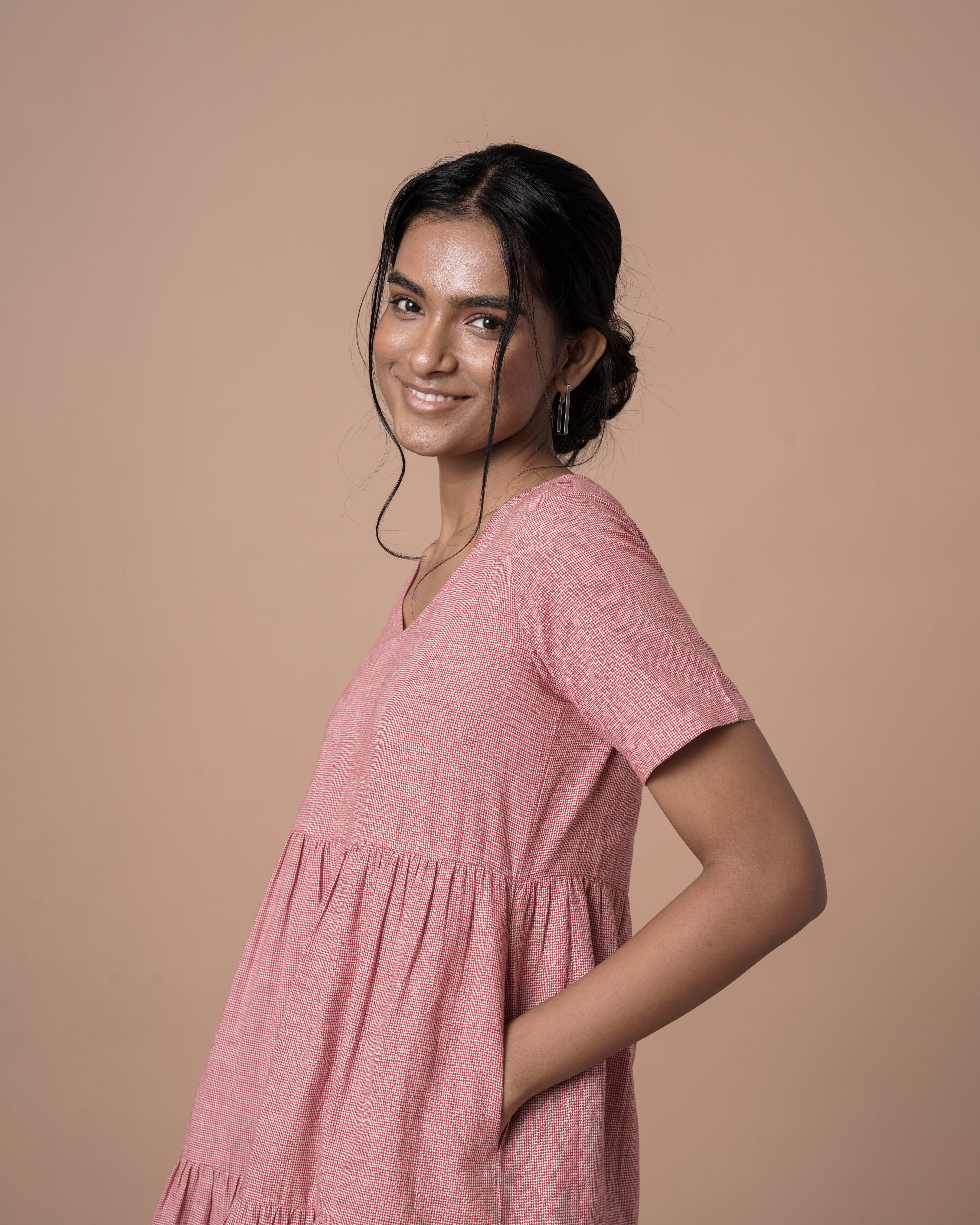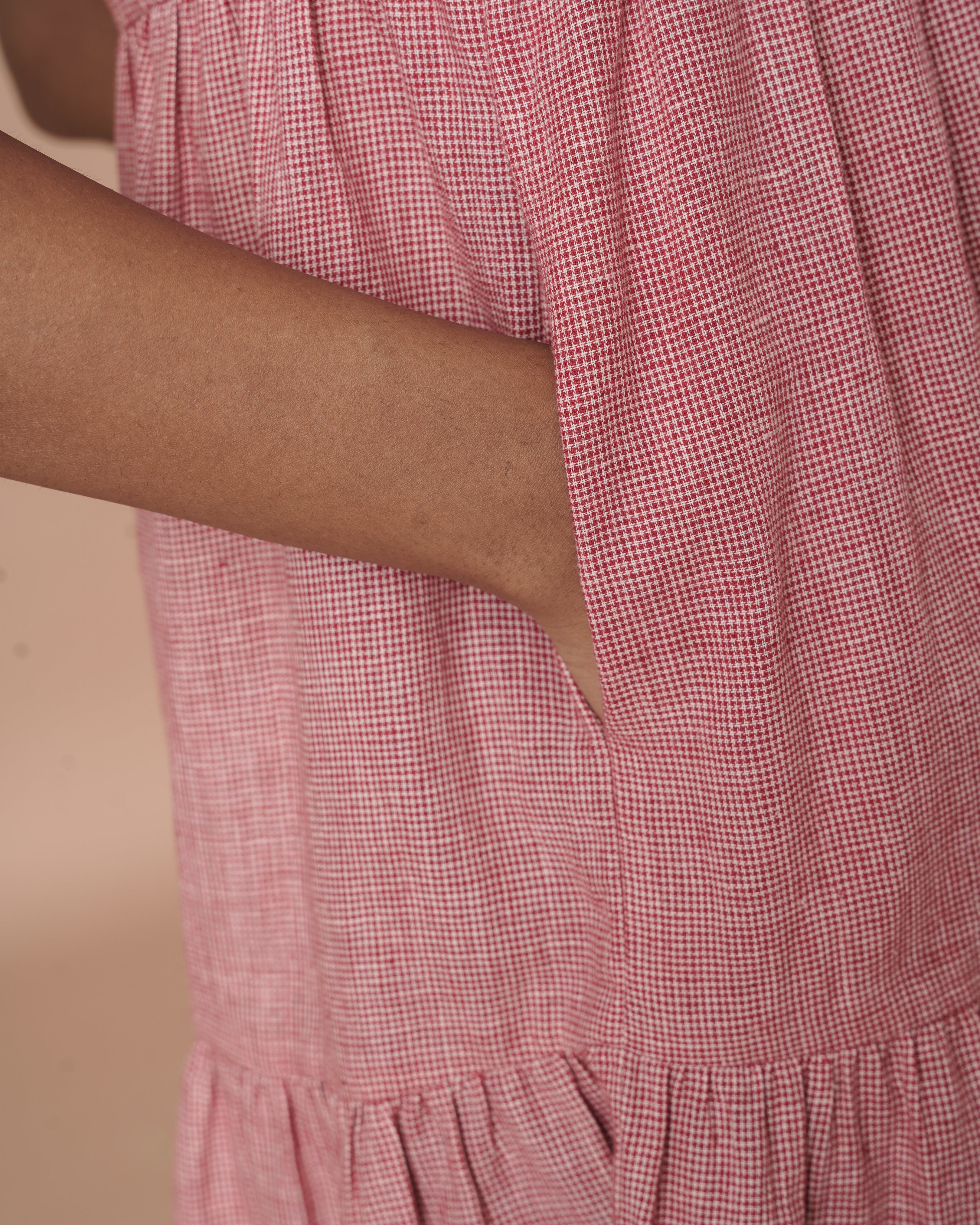 A fit and flare dress. Adorned with small checks in a featherlight fabric that invites delightful twirls.