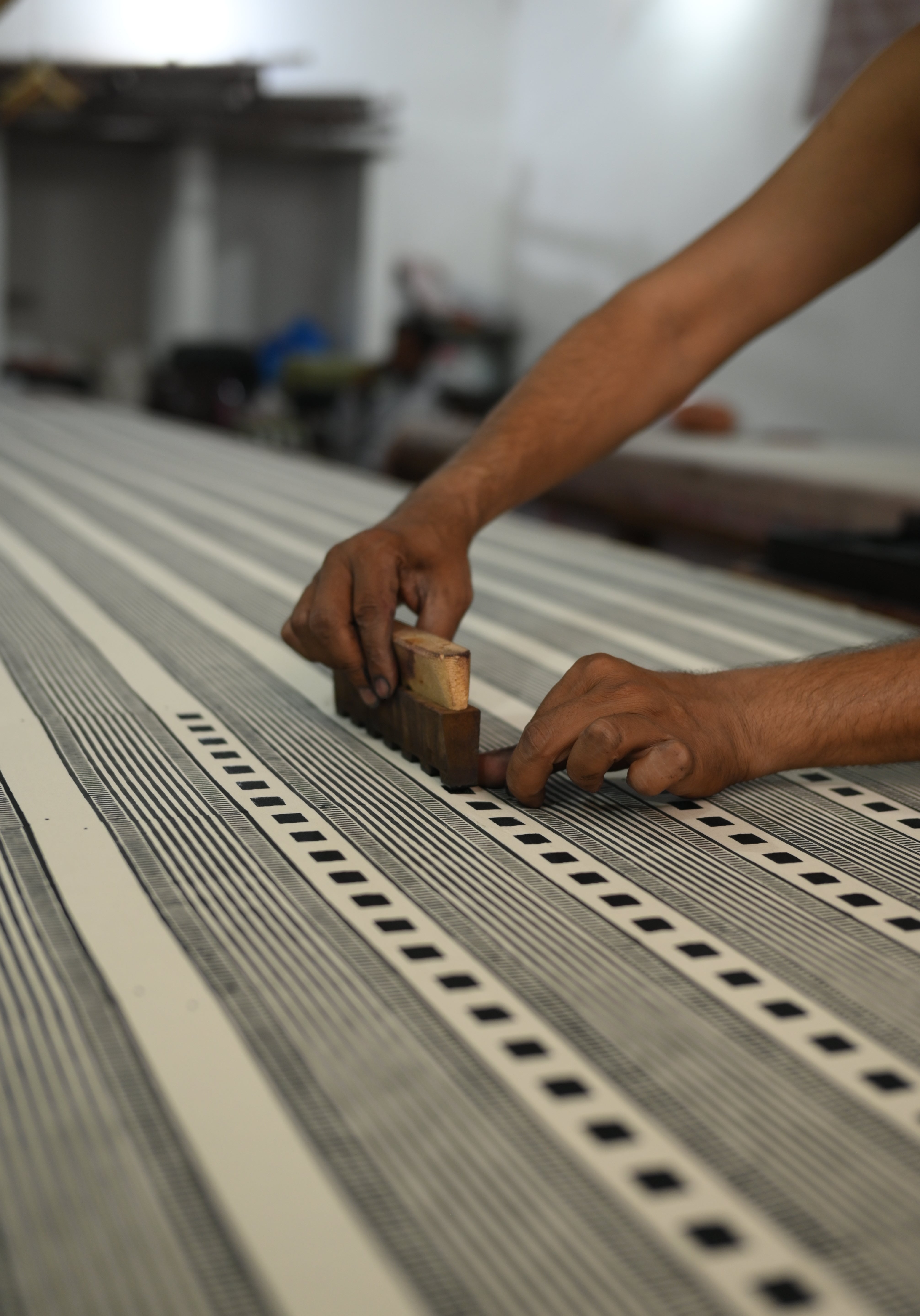 Most of our shirts feature handblock printing - a technique perfected by artisans in Rajasthan. Every piece carries the mark of the hands that made it.