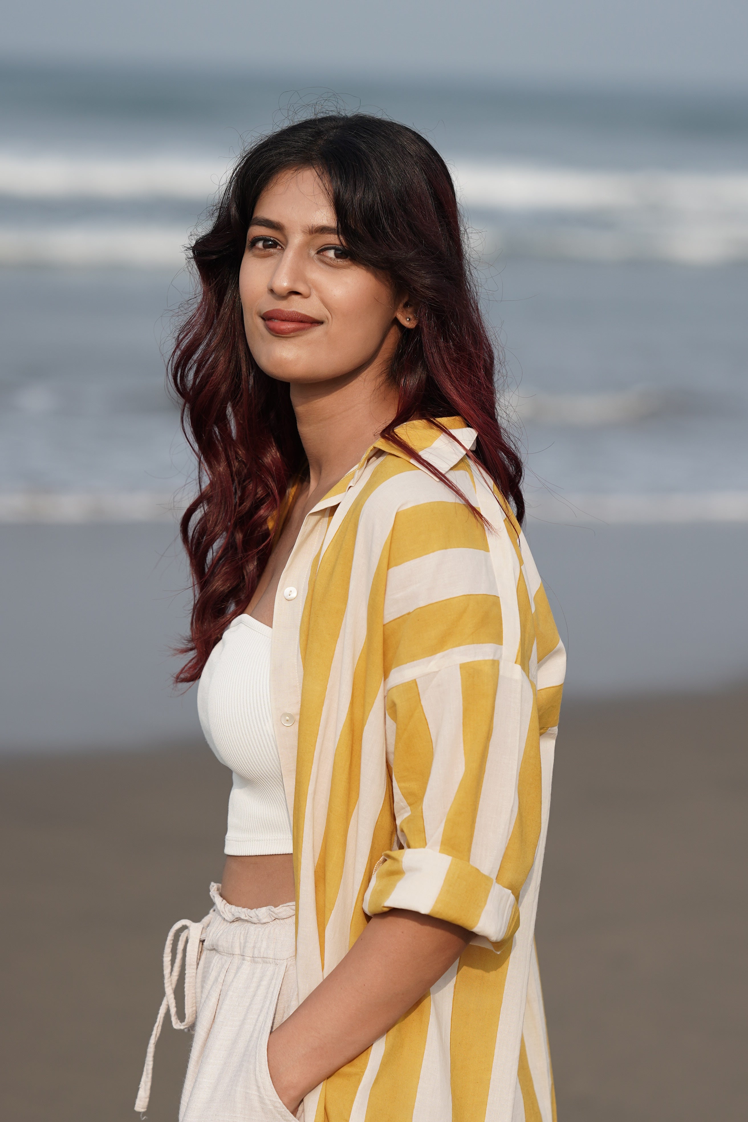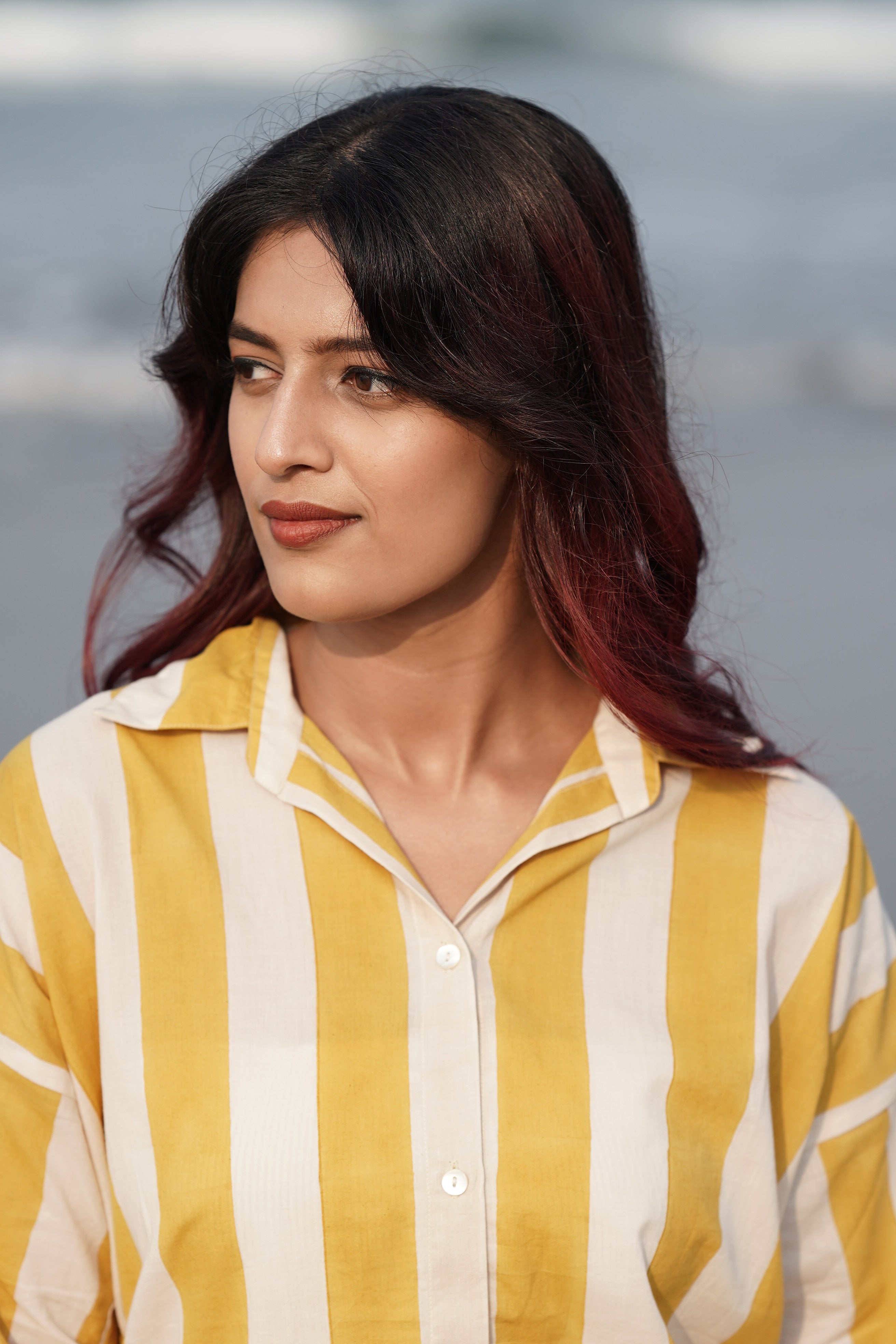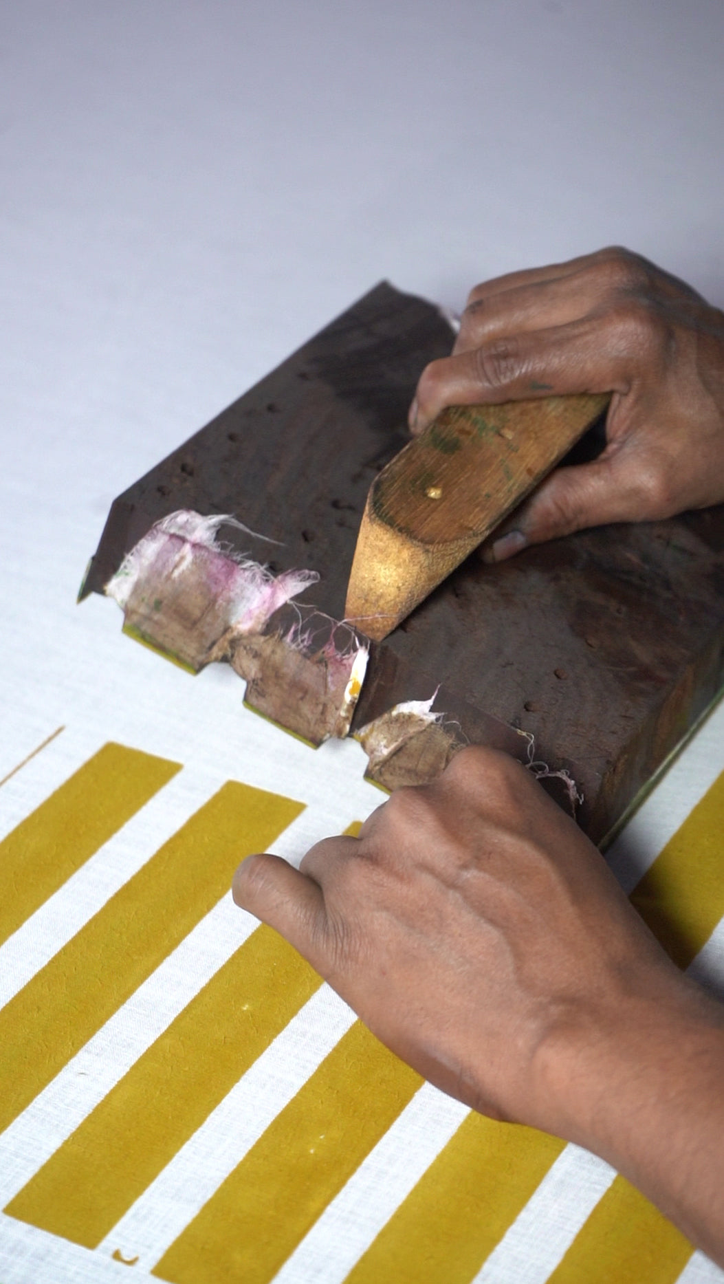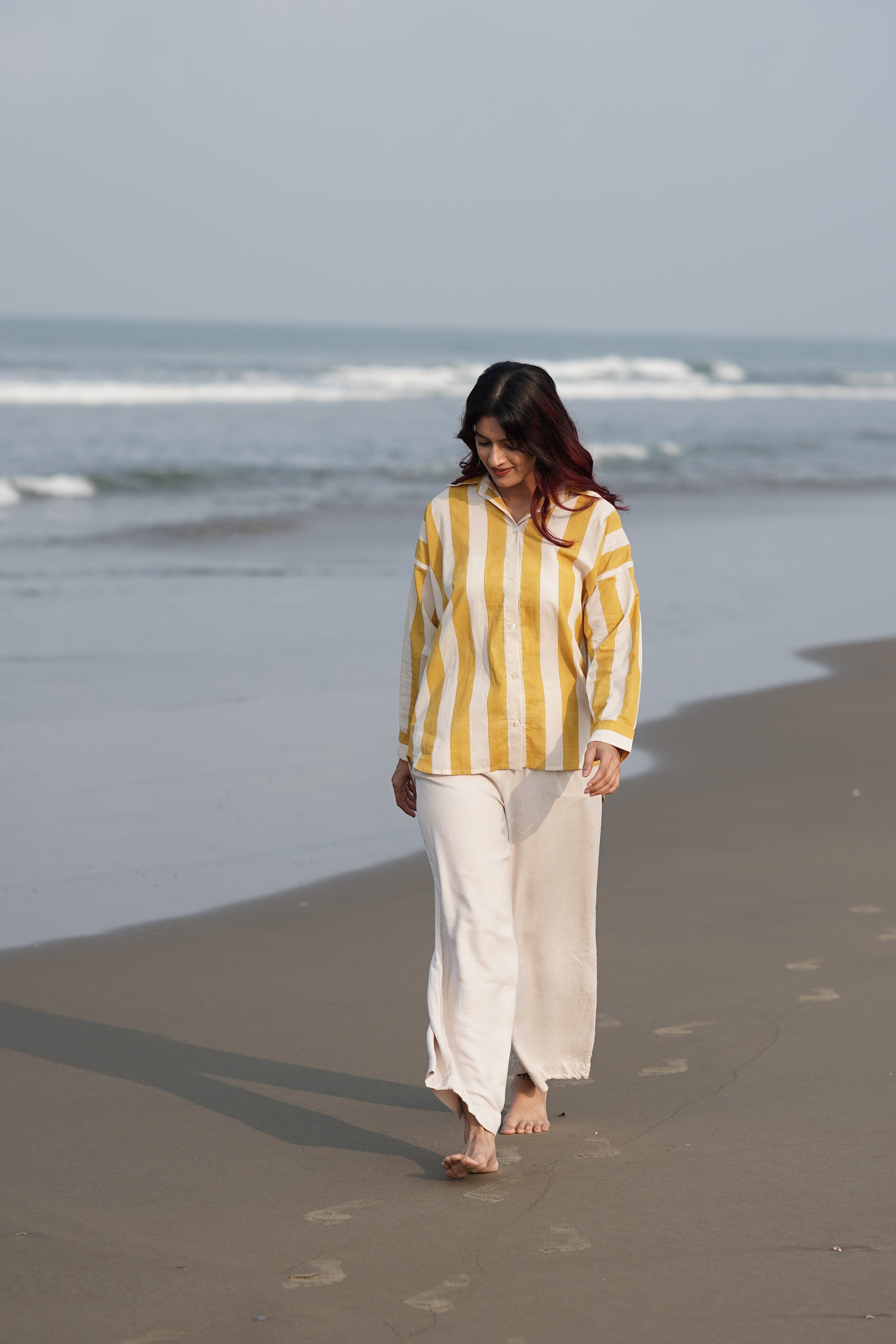 Broad handblock-printed stripes in a happy yellow hue, the kind that lifts your mood the moment you slip it on.